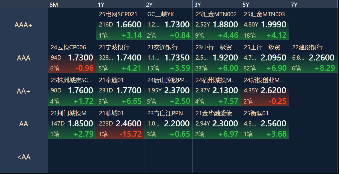 上周在权益市场的打压下,债市承压,利率多数上行。今日继续税期走款,资金面偏紧,现券利率多数上行。上周所动继续拉升,而债市尽管有修复,也很快被汹涌的卖盘压制。今日隔壁大A三大指数早盘集体高开,市场持续放巨量,债市这边继续承压。今日债市暴雨,30Y国债已经来到了2.0%,银行间主要利率债全线上行,上行幅度3-6bp不等,在喵喵看来这个位置可以进场或者补仓搏一搏。