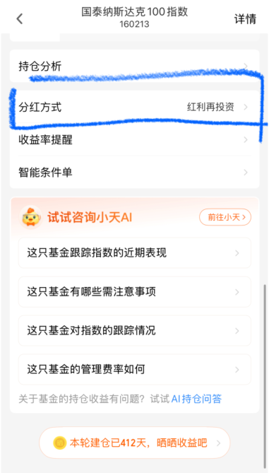 所以,如果你继续看好纳指100的表现,记得在8月20日15:00之前把分红方式改成“红利再投资”,这样就不用担心因为分红导致持仓份额变少的问题了。