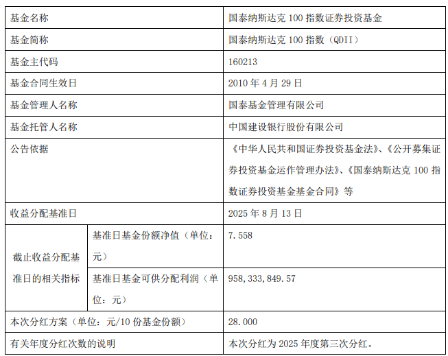 大家关注到了吗,国泰纳指100基金今天发了公告,要分红了。$国泰纳斯达克100指数(OTCFUND|160213)$