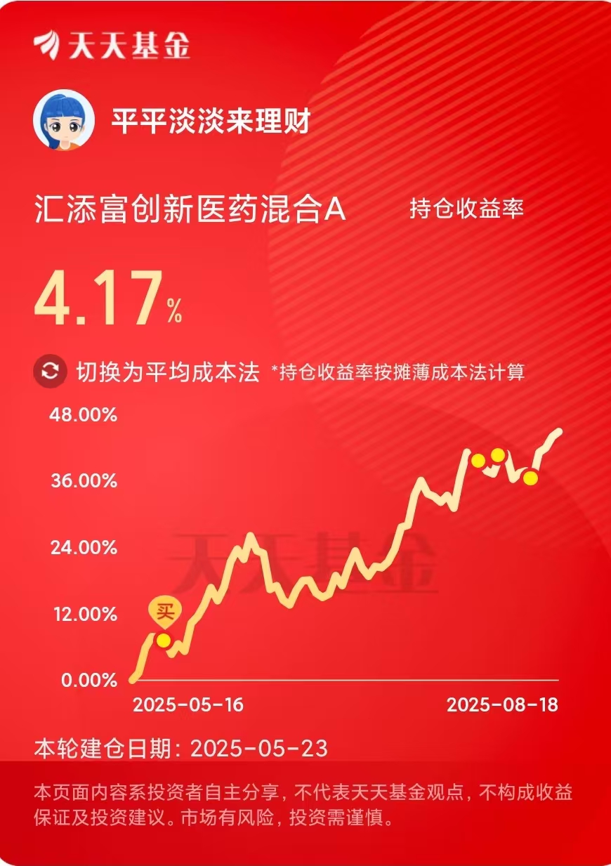 我认为当前市场利好频出,流动性宽松与政策支持共同推动长期牛市格局。也许短期市场可能存在波动,但医药赛道作为兼具防御性与成长性的优质赛道,其长期配置价值毋庸置疑。咱们通过定投的方式配置,平滑成本的同时又能分享行业成长红利,抓住这一波行情吃肉了呀~#券商价值重估行情:板块低估低配##晒收益##沪指创近10年新高##机构:A股健康牛!沪指4000点可期?##八月基金投资策略##达人收息方法论#