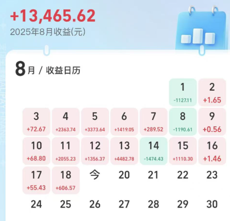 最近天天好开心呀,因为哪里都是赚钱的,场内外收益都再创新高了。