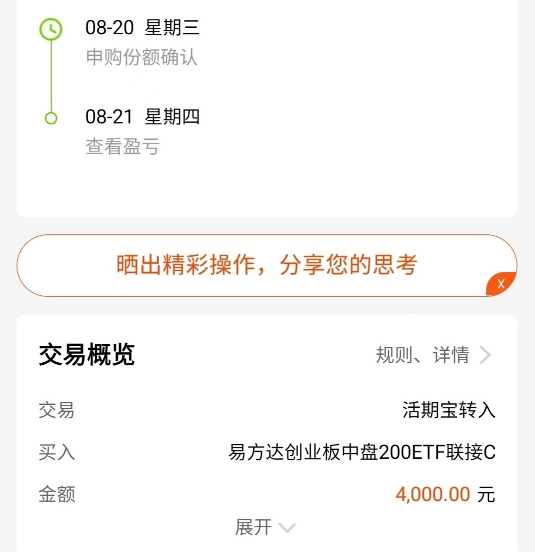 今天股市有点波动,正好是个上车的好时机。$易方达创业板成长ETF联接发起式A(OTCFUND|021749)$这只基金专门投资创业板里的中盘成长股,跟踪的创业200指数包含了200家流动性不错、中等规模的公司,都是些有创新潜力的成长型企业。这只基金表现挺亮眼的,近一年收益率达到99.49%,在同类产品里排名前1.89%。趁着市场调整,我打算今天加点仓。