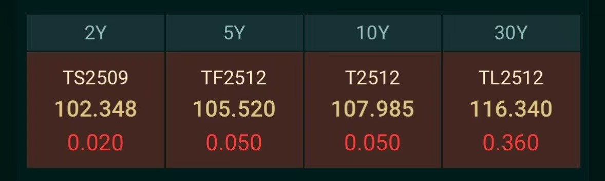 30年期主力合约涨0.36%。