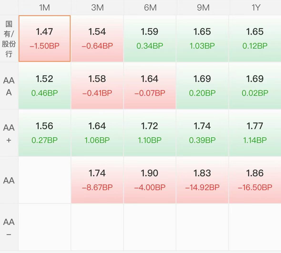 同业存单:阴。