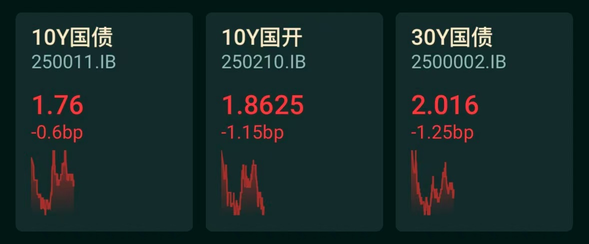 30年期国债活跃券收益率:下行1.25bp,报2.016%。
