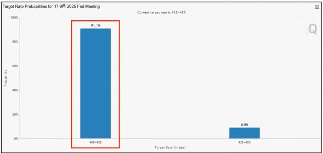 从降息预期来看,鲍师傅发言前,市场人为9月降息的概率在70%出头,而讲话后,上升到了90%以上了。