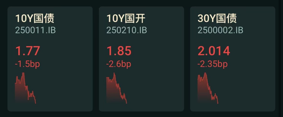 10年期国债活跃券收益率:下行1.5bp,报1.77%;