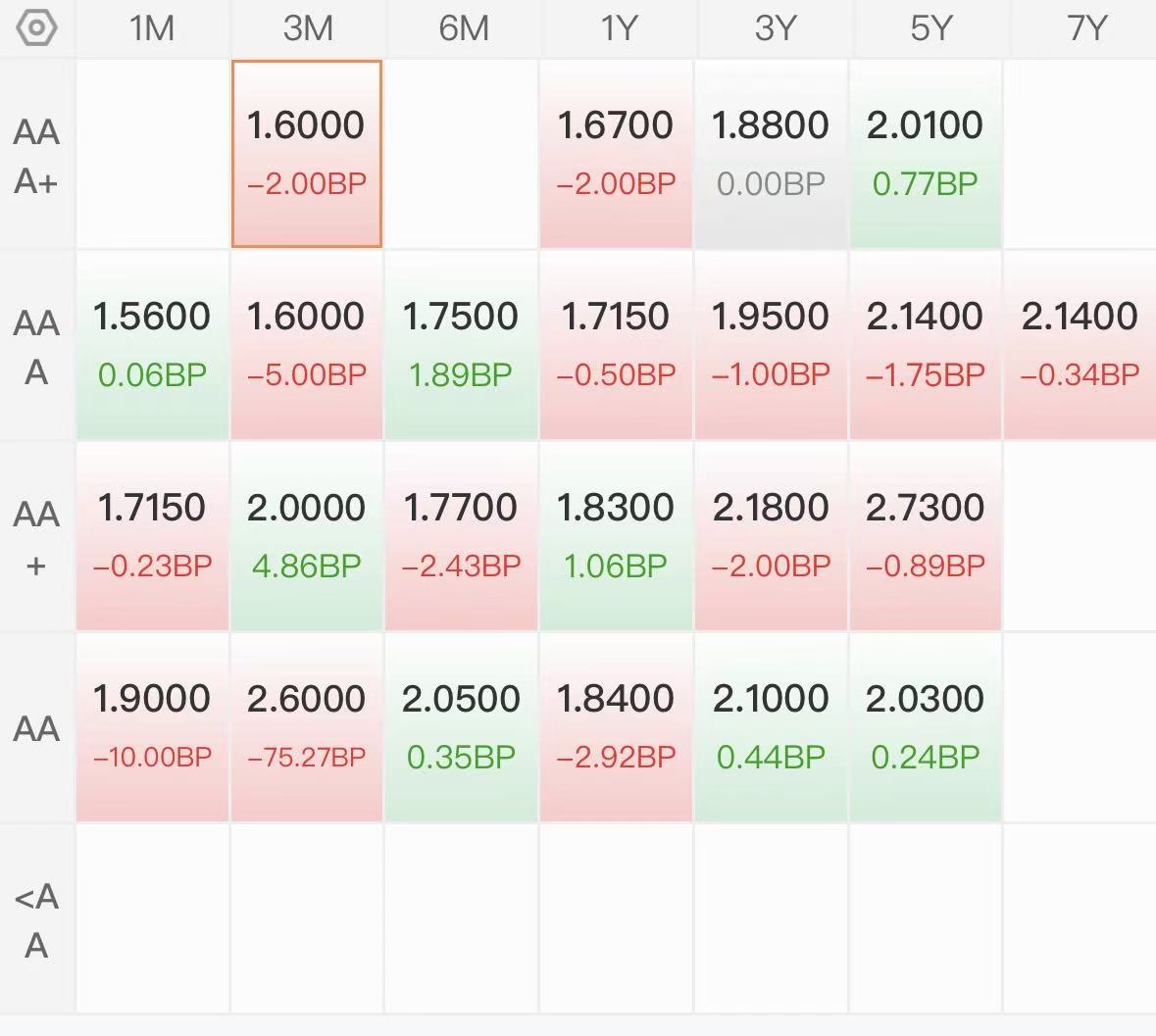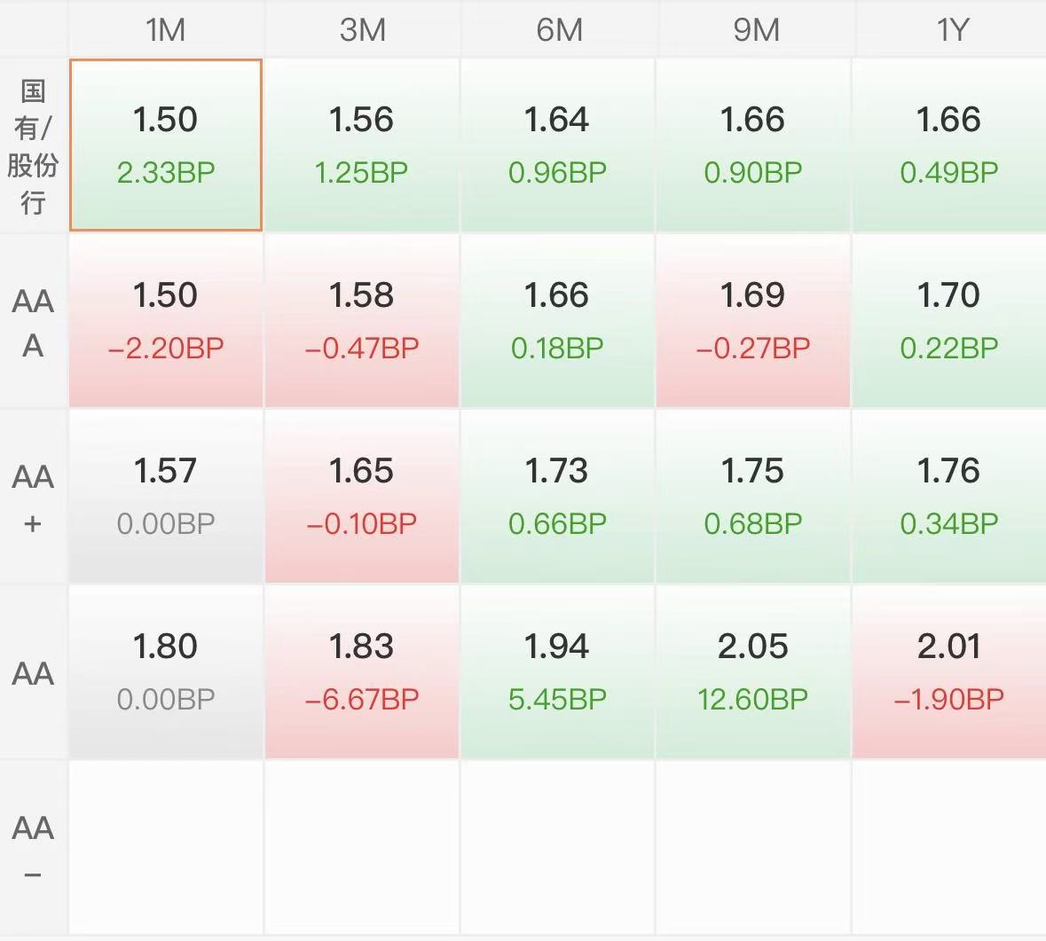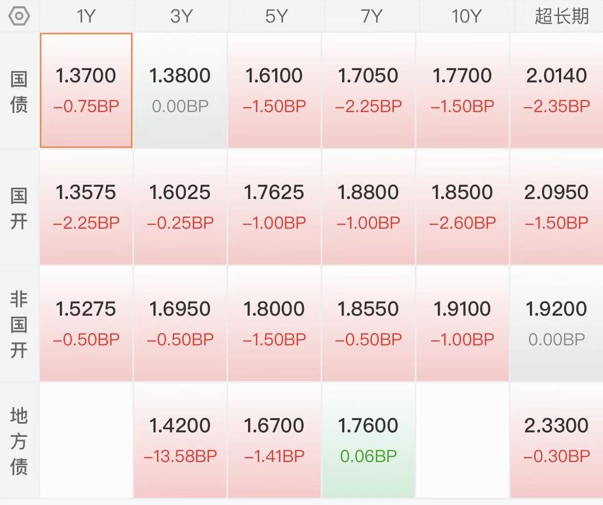 利率债:晴,下行幅度有所扩大,多在1-3BP之间。