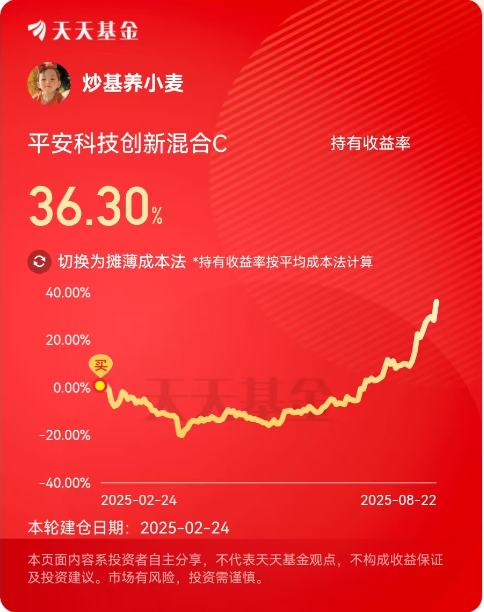 家人们今天的 A 股像开了外挂!创业板指飙涨 2.22%,半日成交直接冲破 2 万亿,CPO 和 AI 芯片板块嗨翻全场。咱麦爸手里的$平安科技创新混合C(OTCFUND|009009)$更是踩对节奏,盈利稳稳站在 36.3%!