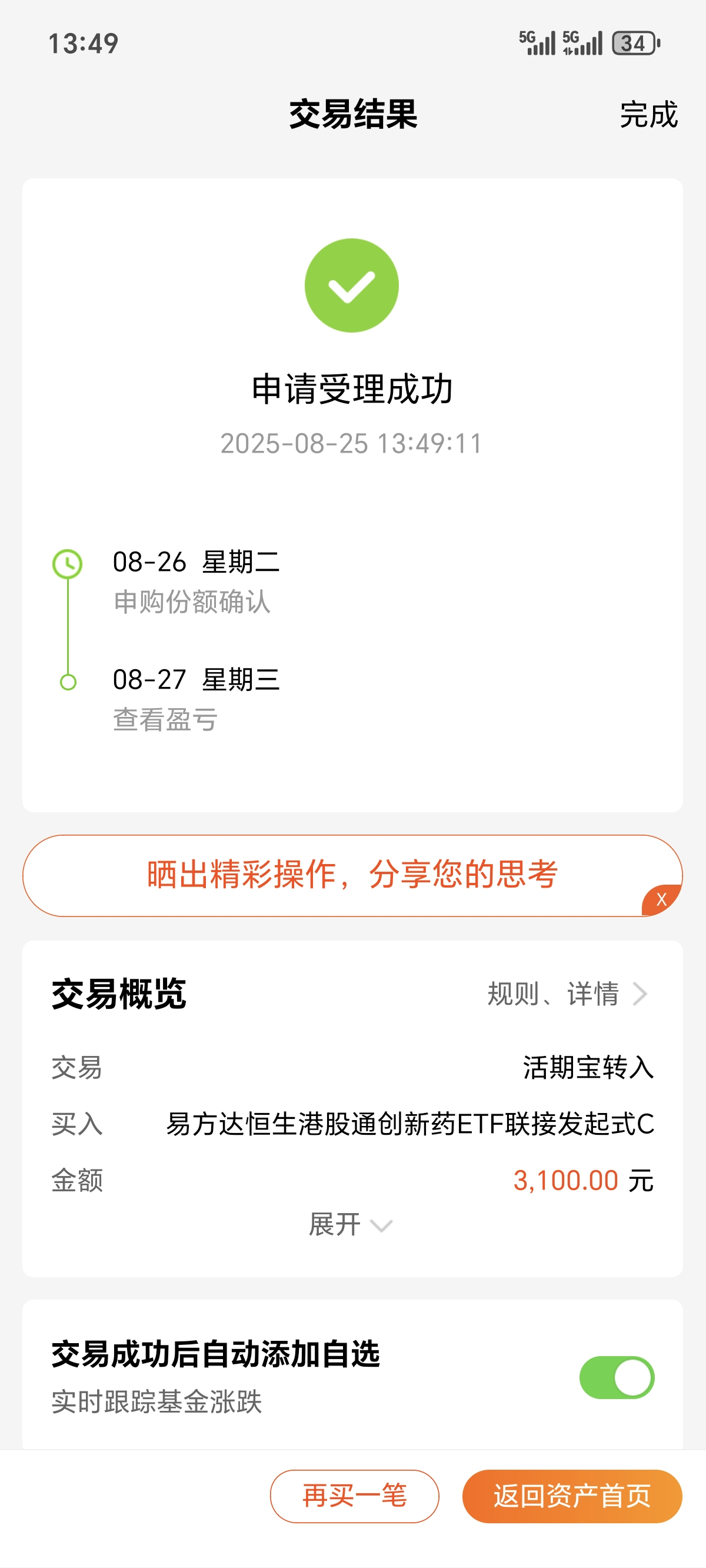 今日市场行情持续火热,而创新药却出现了短暂回调,不过创新药专利出海趋势短期难以逆转,同时海外降息周期也即将开启,我认为创新药产业,或许会开启新一轮的上涨力度,而我也准备逢低加仓$易方达恒生港股通创新药ETF联接发起式C(OTCFUND|024329)$聚焦恒生港股通创新药指数,创新药含量100%,拥有更强的上涨动力,近一月涨超10.56%,我觉得后市前景可期!