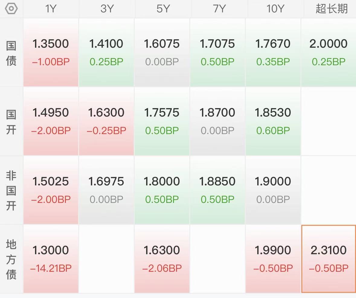 10年期国开活跃券收益率:上行0.6bp,报1.853%;