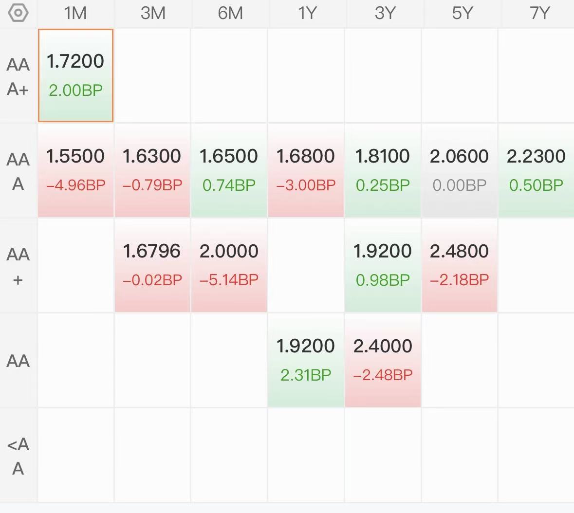 利率债:多云,长短分化比较明显,短端表现优于长端。