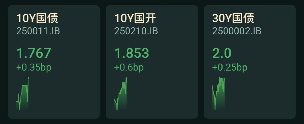 30年期国债活跃券收益率:上行0.25bp,报2.0%。