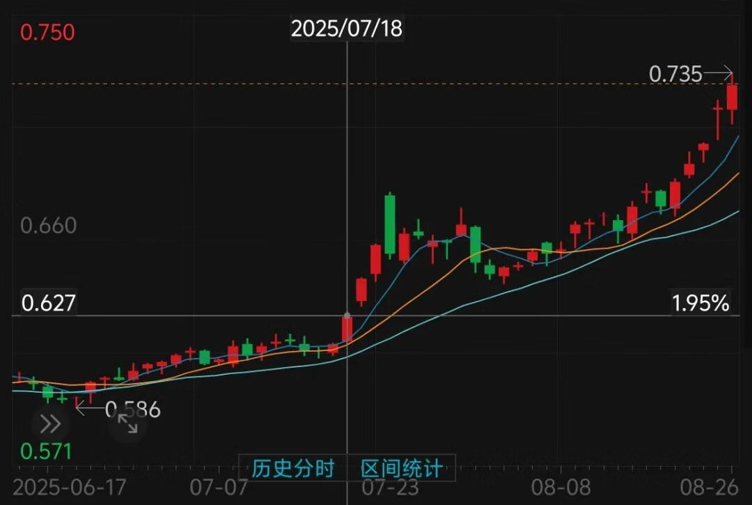 比如下图的,化工ETF516020,最近一个多月,走出了份额翻倍的行情,而且是极度的陡峭化上行。