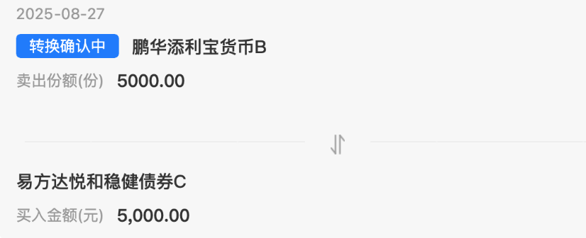 $易方达悦和稳健债券C$+5000,目前上证指数有所回落,但是长期看趋势持续向上,市场修复动能颇为充足。这种情况下,现在固收+类产品把握趋势的性价比依然很高,另外债市震荡回调一段时间,现在也是一个不错的机会,悦和这只基金依靠“债券打底+权益增强”的双驱动策略,在震荡市中既稳妥又有进攻力。近1月收益率为1.25%,近3月收益率2.26%,近1年收益率7.50%,整体表现平稳,今天继续加仓5k作为底仓,格格打算后续慢慢加码,稳稳地持有。