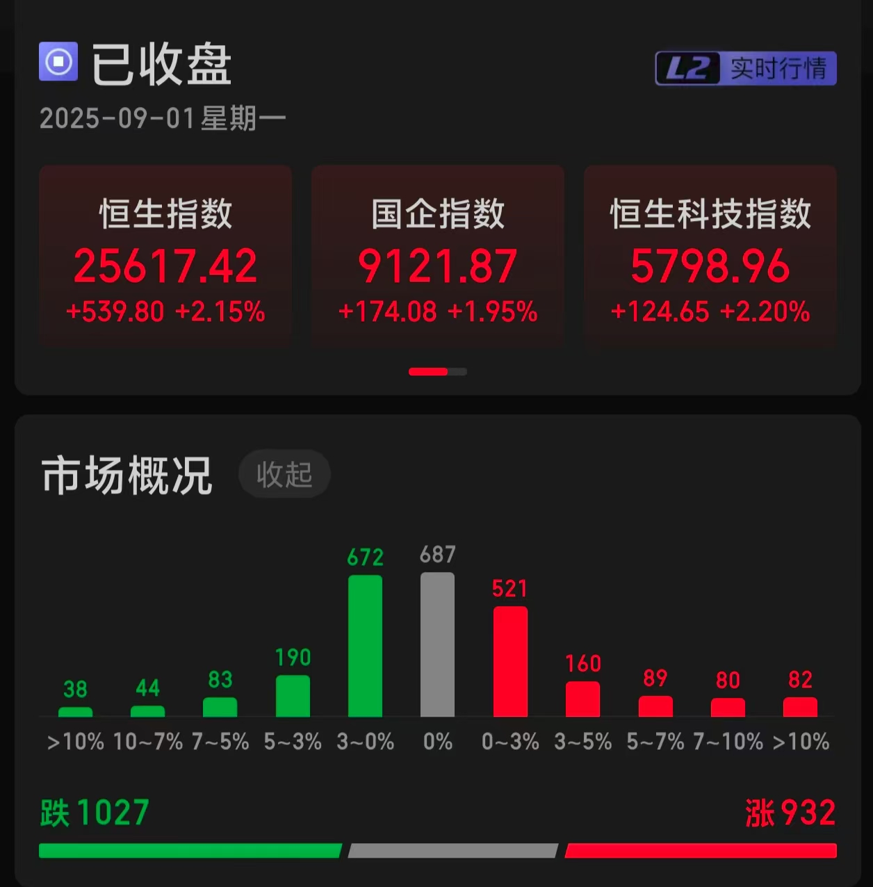 恒生指数上涨2.15%,国企指数上涨1.95%,恒生科技指数上涨2.20%。932只个股上涨,1027只个股下跌。南下资金,净买入119.42亿港元。