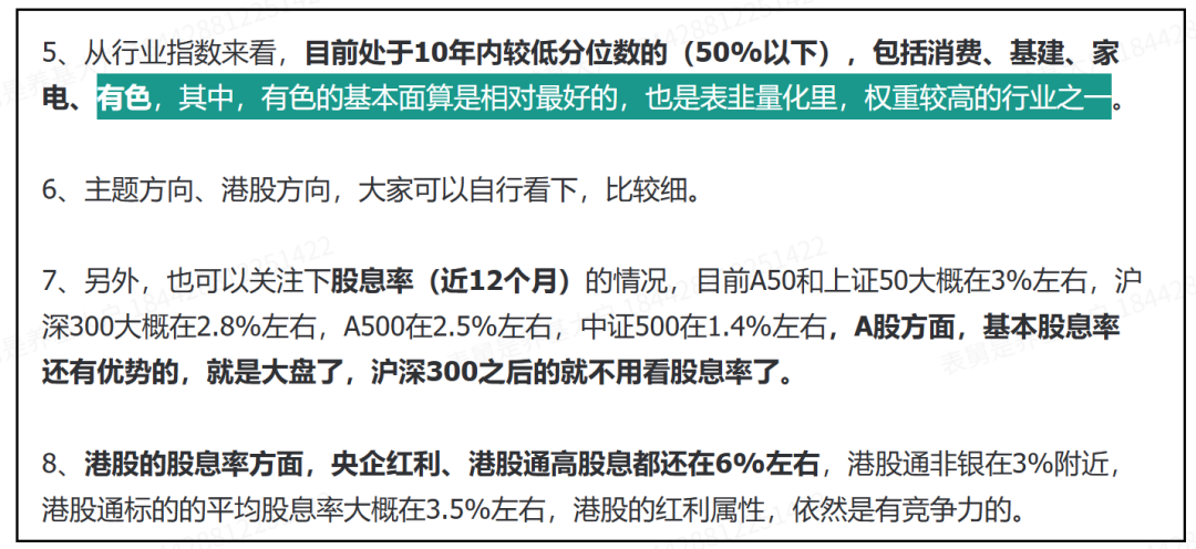 而有色板块,可以多提一句,咱们经常说,当下,在行业配置的过程中,目前主要是哑铃型的结构——哑铃的一侧,配置垄断型高股息板块,比如港股红利这些;另外一侧,则配置高景气度且估值比较合理的行业。