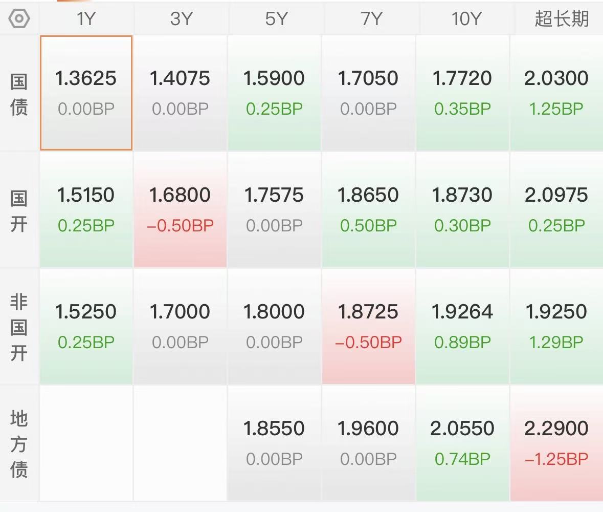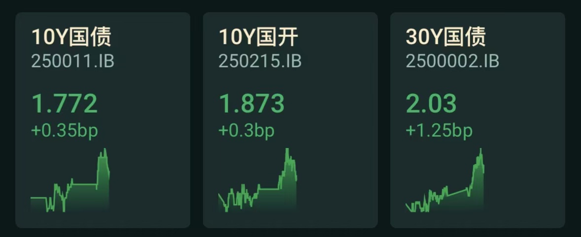 30年期国债活跃券收益率:上行1.25bp,报2.03%。