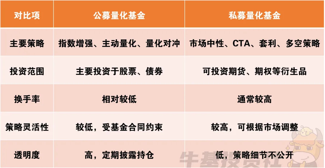 总的来说,公募量化基金策略更加透明和规范,而私募量化策略更加灵活和多样化。
