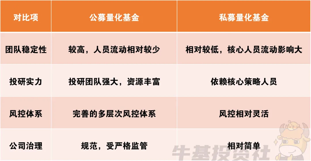 一般来说,公募基金公司拥有更加稳定的投研团队和完善的风控体系,能够为投资者提供更加可靠的投资管理服务。私募基金则更依赖核心策略人员,人员流动影响较大。