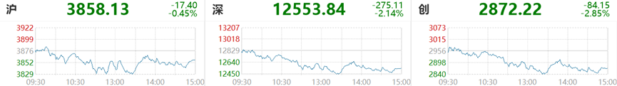 大盘全天震荡调整,三大指数集体收跌,上证综指表现相对坚挺。个股涨跌比为1257:4055,红方占比超2成。