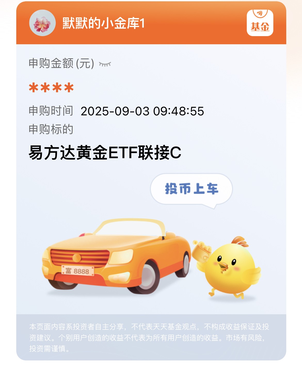$易方达黄金ETF联接C(OTCFUND|002963)$这只基金紧密跟踪黄金价格,能让我较好地把握黄金行情。近期黄金价格强势突破3500美元,创下历史新高,后续还有上行空间,我也分批布局起来,期待收获黄金上涨红利。