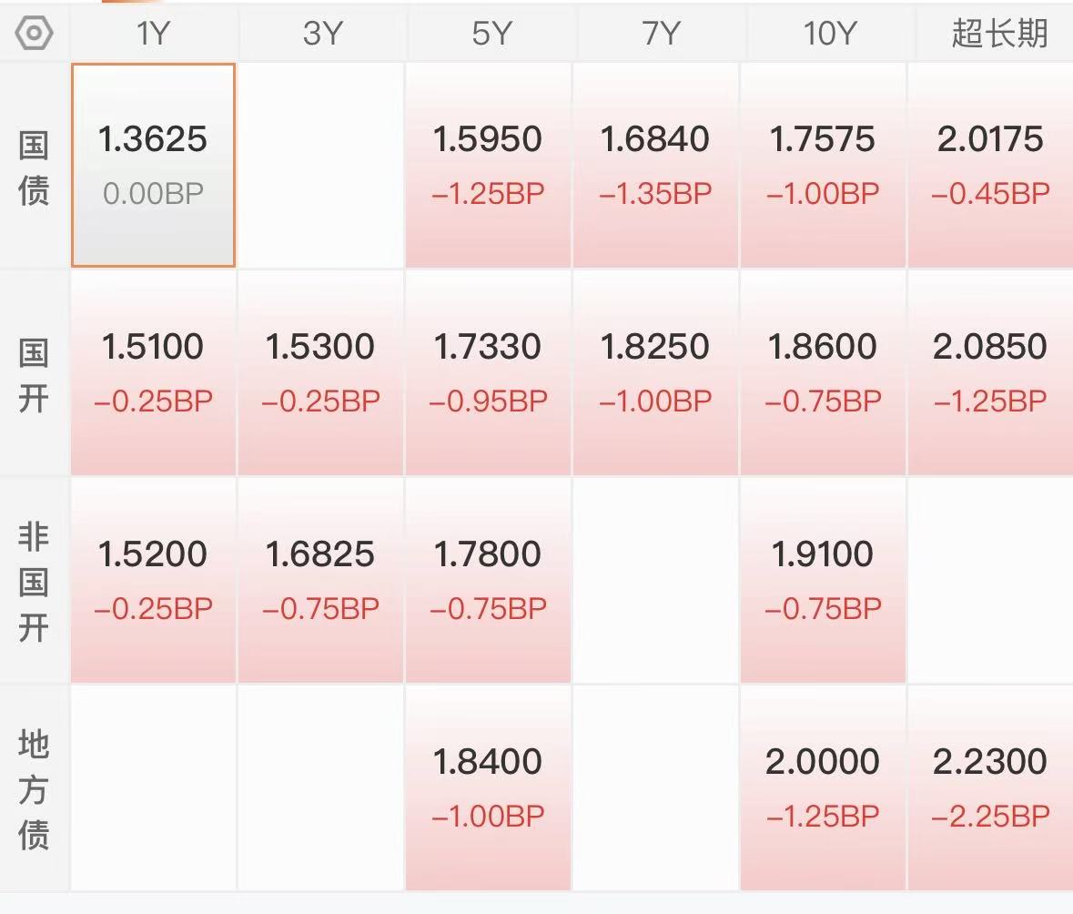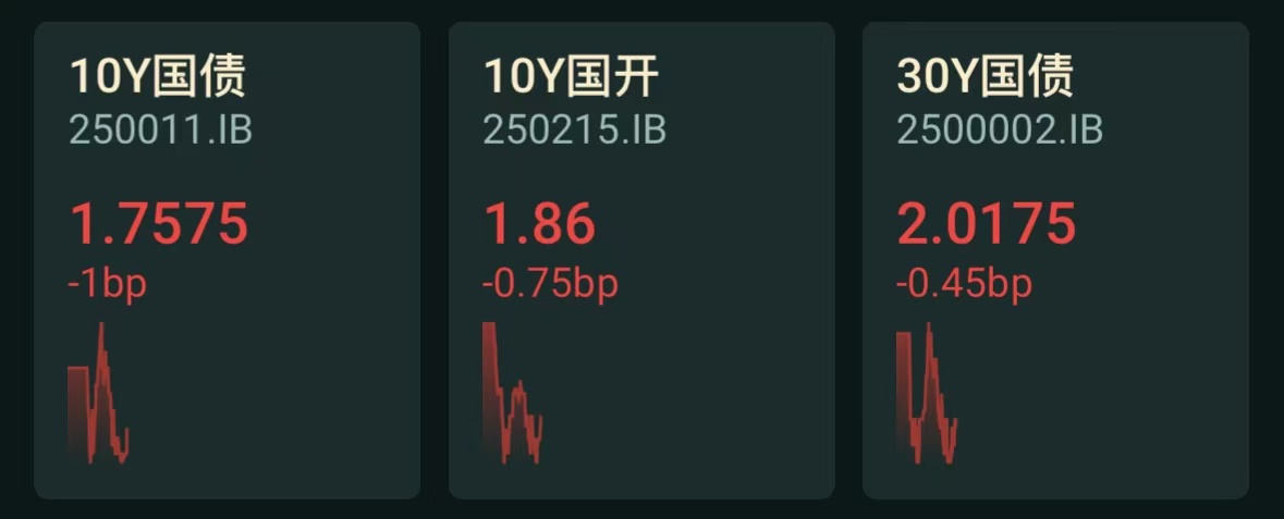10年期国开活跃券收益率:下行0.75bp,报1.86%;