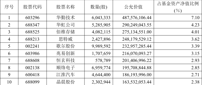 报告期末按公允价值占基金资产净值比例大小排序的前十名股票投资明细