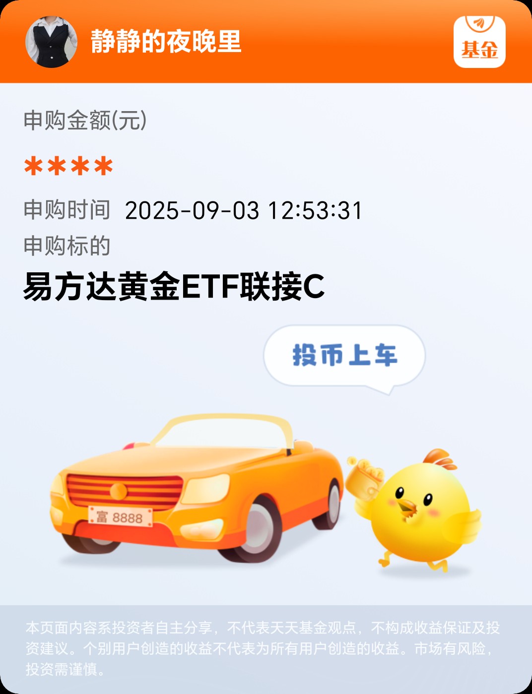 今日全球市场继续普跌,全球长债也出现了回调,而在这种行情之下,黄金赛道却能强势上涨,迎来连续上涨趋势,由此可见黄金的避险功能值得重视,其中我发现$易方达黄金ETF联接C(OTCFUND|002963)$近期迎来七连涨行情,近一年涨幅超37.22%,同时在美联储降息预期升温下,金价将会再次起飞,创下新高度,我准备先加仓一波啦!