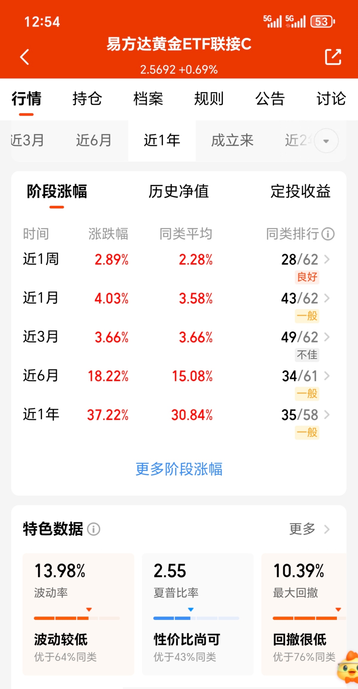 近期贵金属赛道迎来了起飞行情,再加上全球长债开始下跌,黄金的避险功能越发凸显,而在这种行情之下,我也准备入手一些$易方达黄金ETF联接C(OTCFUND|002963)$不但连续7个工作日上涨,而且看目前趋势还在稳定向上,近一年涨幅高达37.22%,业绩表现出色亮眼,再加上美联储降息预期逐渐升温,利好金价行情,我也准备开始定投起来了!
