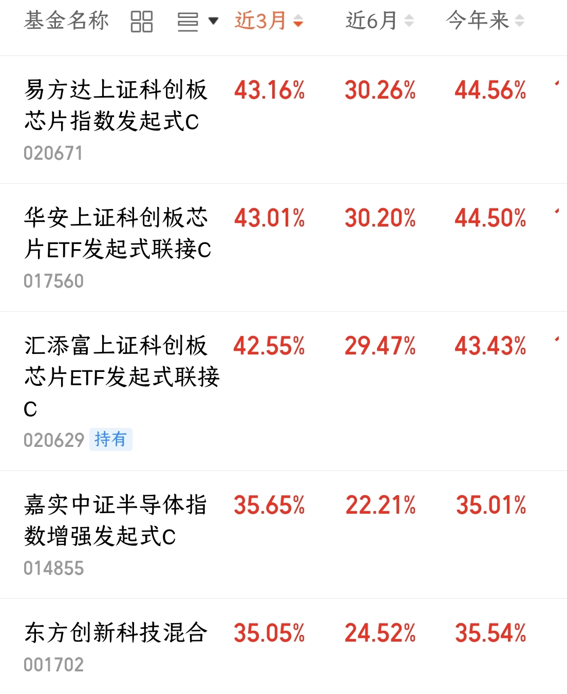 今天股市继续调整,加仓的机会来了。科创芯片板块近期也是震荡调整,短期情绪波动带来回调机会。市场存在大量踏空资金,有望在调整阶段进场补仓,推动后续上涨。$易方达上证科创板芯片指数发起式C(OTCFUND|020671)$表现优异,近1月、3月和6月涨幅均显著领先同类产品,是投资者布局该领域的优选标的。当前回调正是加仓良机。
