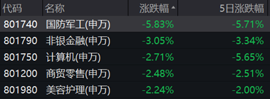 市场全天震荡分化,沪深两市全天成交额2.36万亿,较上个交易日缩量5109亿。截至收盘,沪指跌1.16%,深成指跌0.65%,创业板指涨0.95%。军工板块收跌。