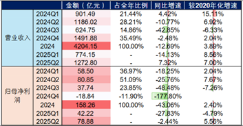 业绩端,军工行业已在兑现结构性反转逻辑,目前部分细分板块业绩端改善信号清晰。据兴业证券研究所数据,2025H1国防军工(中信)板块共实现营业收入2046.95亿元,同比-1.94%;归母净利润121.10亿元,同比-13.10%。从二季度单季看,2025H1国防军工(中信)板块共实现营收1272.80亿元,yoy+7.32%;归母净利润78.88亿元,yoy-2.44%。作为对比,2025年第一季度营收774.15亿元,同比-14.13%;归母净利润42.22亿元,同比-27.83%。行业归母净利润在去年Q4单季亏损,今年以来逐级改善,军工行业长夜已尽。