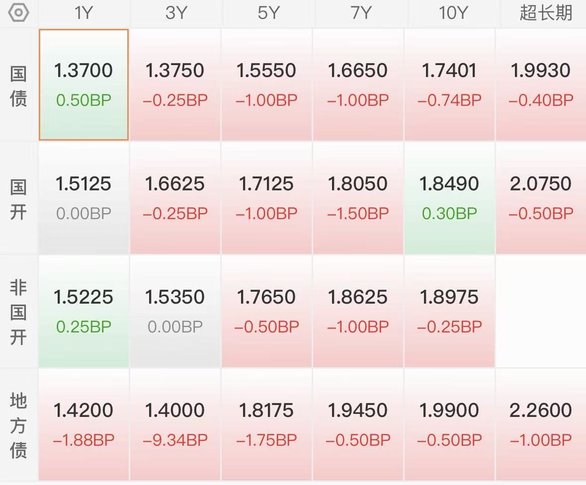 10年期国开活跃券收益率:上行0.3bp,报1.849%;