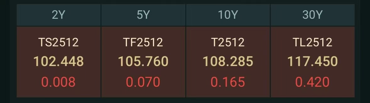 30年期国债活跃券收益率:下行0.4bp,报1.993%。