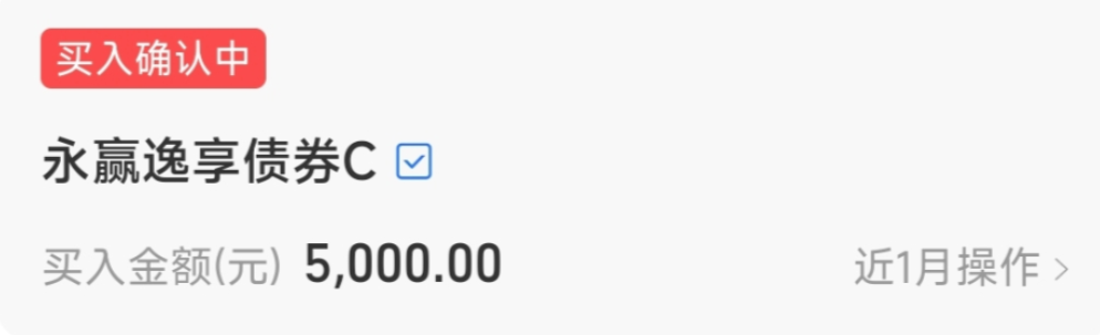 操作:$永赢逸享债券C(OTCFUND|021242)$+5000元