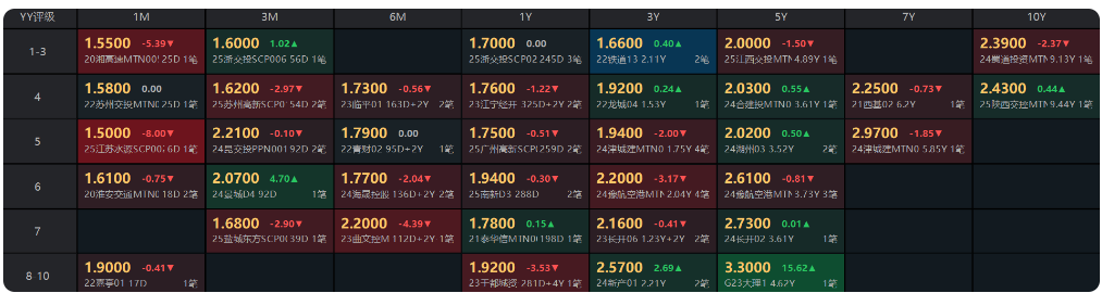 利率债:各久期丢蛋,7-10丢10个左右,超长债丢36个左右
