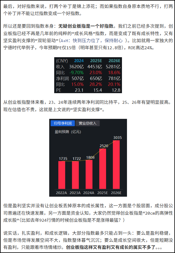 这话并不是最近创业板猛涨之后才这么说。我们之前也多次提到过(包括但不限于:4月22日《A+H:快到压力位了,保持耐心》、5月2日《创业板指修订:是的,ESG真的能提高收益 》),像创业板这样又有坚实盈利,又有强成长属性的指数,其实A股里相当稀缺。