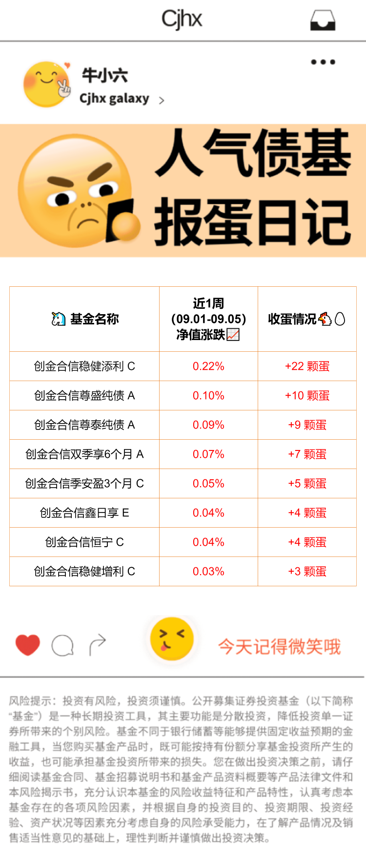 新的一天来咯!!→_→看看近一周(09.01-09.05)热门债基业绩如何吧?