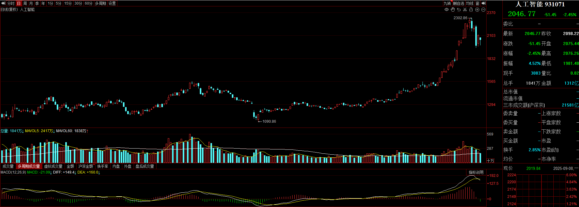 AI智能体丨人工智能止跌反弹,目前指数继续翻红,日K线已经上穿5日均线的支撑,短期关注这个支撑,一旦站稳5日均线,多头趋势就会王者归来,当下可以继续拿一拿。
