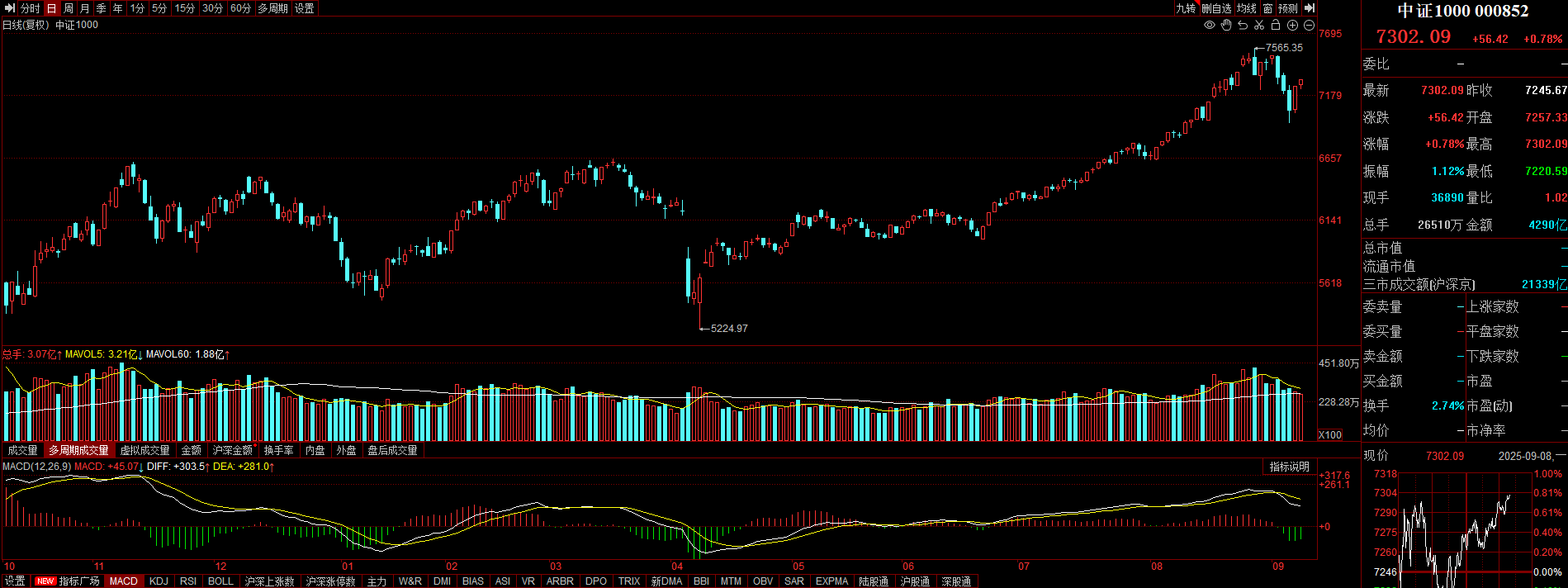 操作:顺势上车5000元$大成中证1000指数增强发起式C(OTCFUND|018662)$基金,这只基金跟踪中证1000指数,中证1000指数是小盘股的代表,成分股中多为中小型公司,其中科技企业占比比较高,例如电子、医药生物、计算机、电力设备、机械设备等占比比较高,这些企业处于成长期,业绩和估值弹性通常高于大盘股,近期微盘有些震荡,中证1000指数的波动可能会增大,目前中证1000指数已经止跌反弹,今日指数已经成功的站上20日均线支撑,短期行情有望继续走强,当下正是顺势布局的好机会。