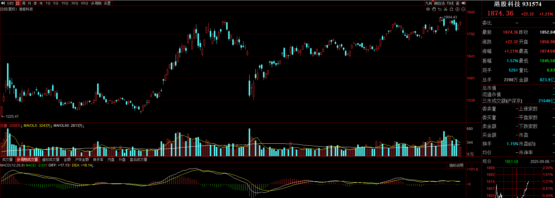 此外,虽然科技目前有调整,但是科技牛的趋势依然还在,近期可以关注一些低吸的机会。午后港股科技也拉起来了,港股科技目前还在箱体里面,短期继续格局,等待行情的突破。今日我有重大的调仓,点个赞,一起来看看吧!