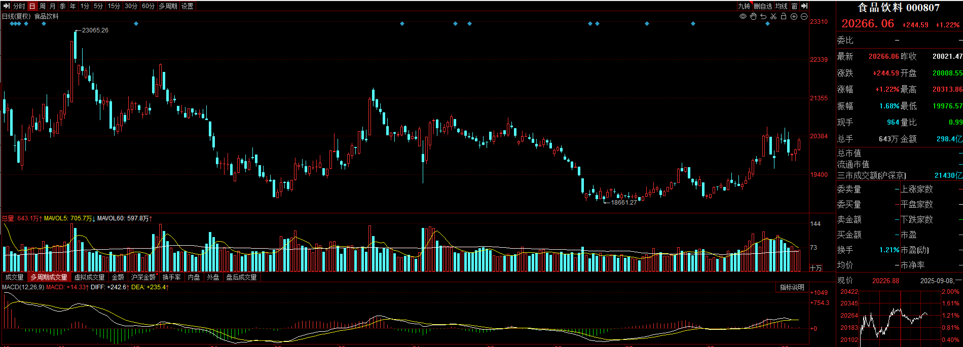 还有不到1个月就是国庆节了,这对于食品饮料来说本身就是一种利好,再加上今年牛市赚钱了,我相信消费能力也有会有所提高,食品饮料集中了众多具有品牌优势、渠道优势和稳定盈利能力的龙头企业,现在正是低吸的好机会。