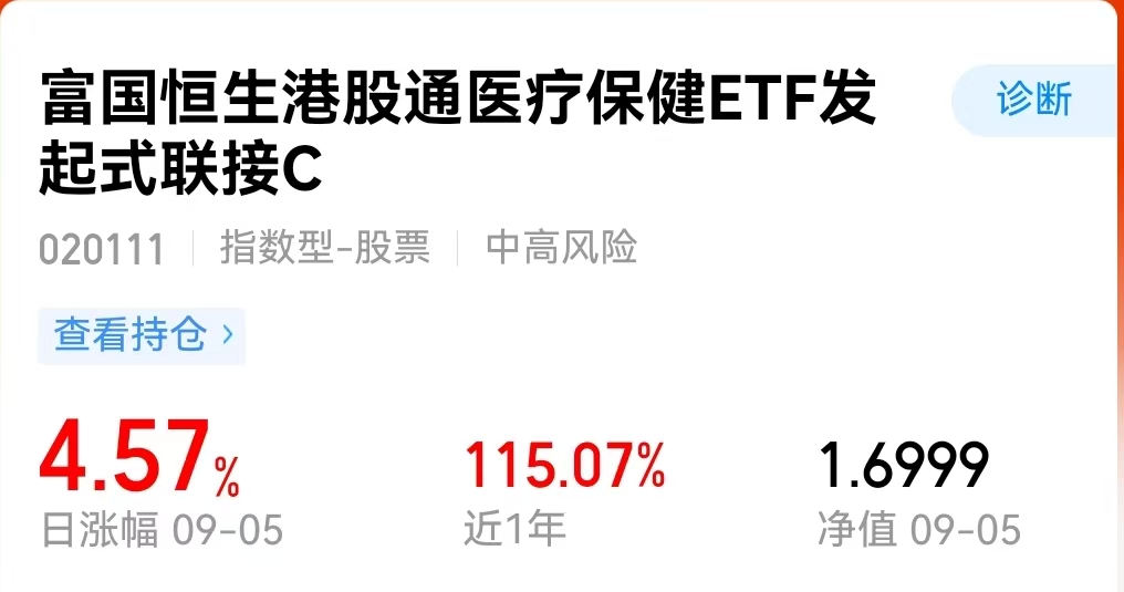 今天大A分化明显,沪指微涨0.25%,创业板却跌逾1%。医药板块跟着晃悠,麦爸持有的$富国恒生港股通医疗保健ETF发起式联接C(OTCFUND|020111)$也随市小幅回调0.65%,这点小回调不算事,麦爸一点不慌!