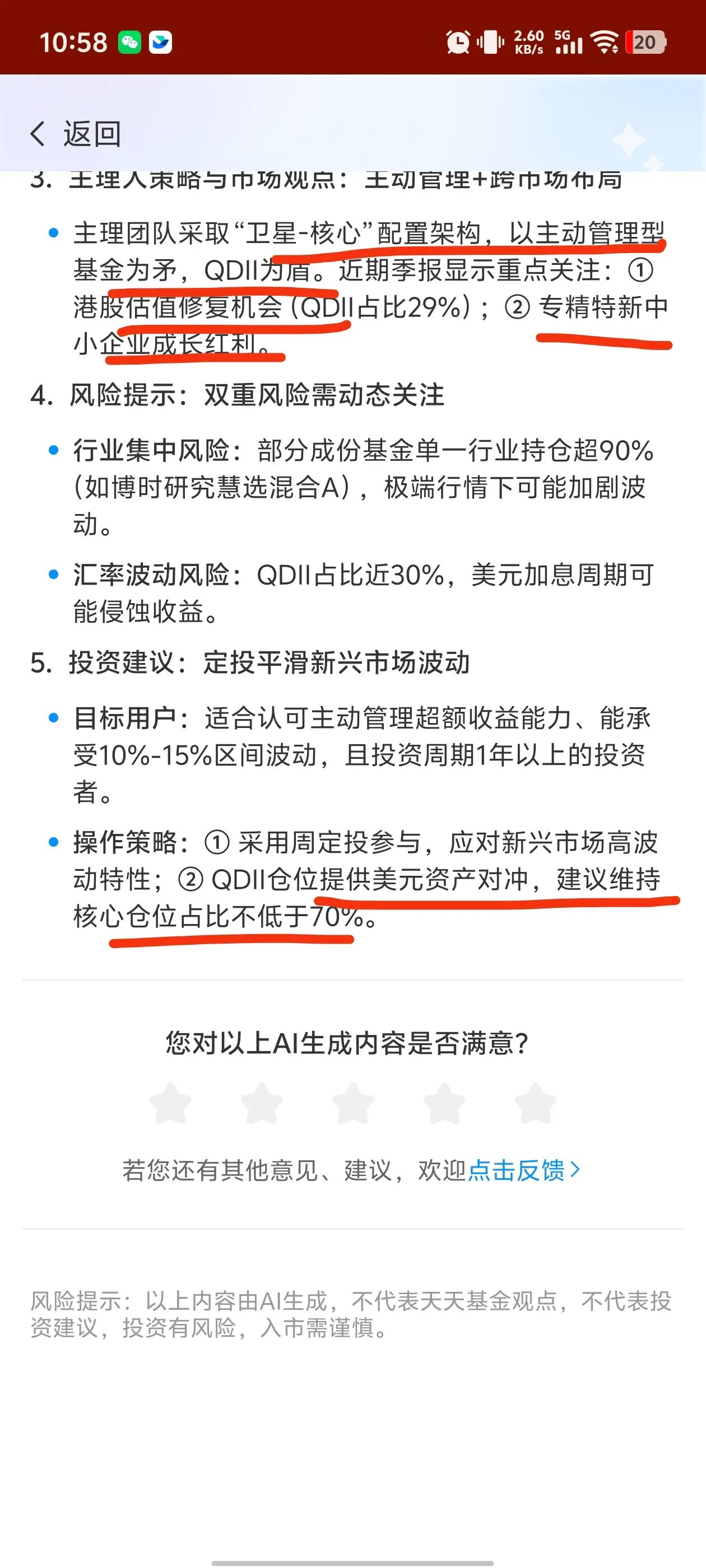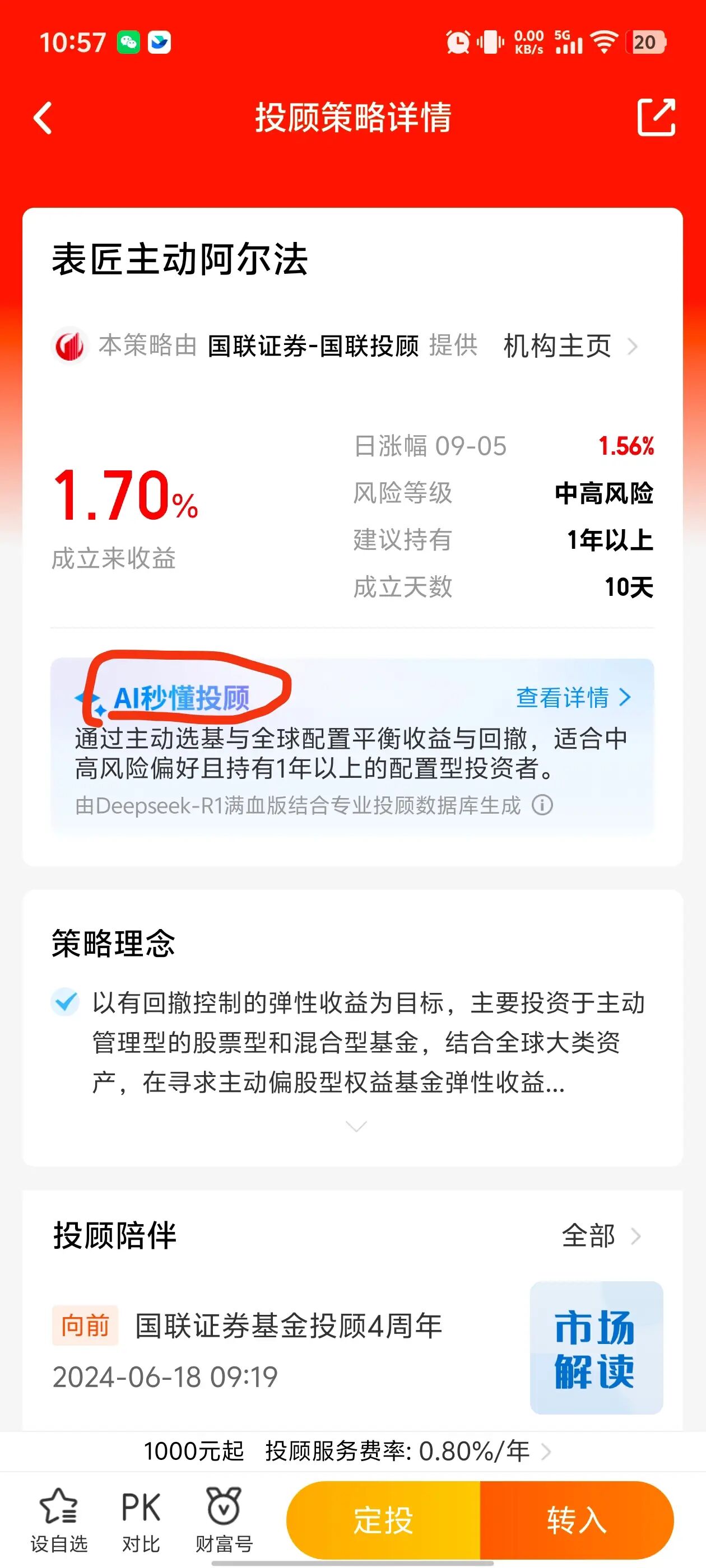 周末又去天天基金看了下,注意到天天基金版本的Deepseek大模型对这个投顾组合有做测评。周末就顺着天天的这个测评来一起看一看这个测评,和我作为跟投人的感受、以及这个策略的介绍,是否有大的出入。