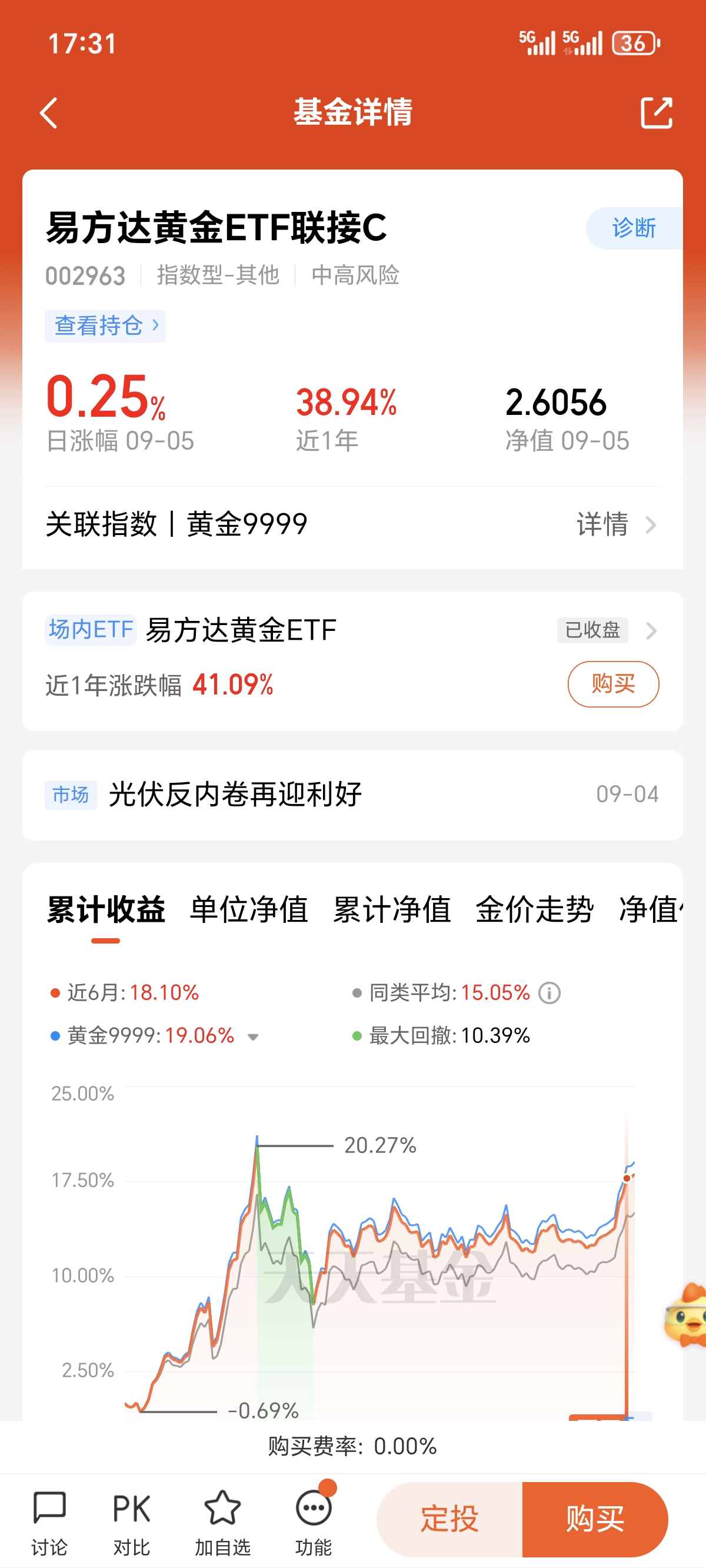 近期股市行情整体走势有所波动,局势变化难测,而在这种行情之下,作为避险资产的黄金,却能走出独立行情,近期持续稳定上涨,其中我比较看好$易方达黄金ETF联接C(OTCFUND|002963)$近6个月涨幅18.1%,近一年涨幅高达38.94%,整体业绩表现出色亮眼,而当下美联储预期也在逐渐升温,为金价的上涨提供了有效的支撑,我先定投一些啦!