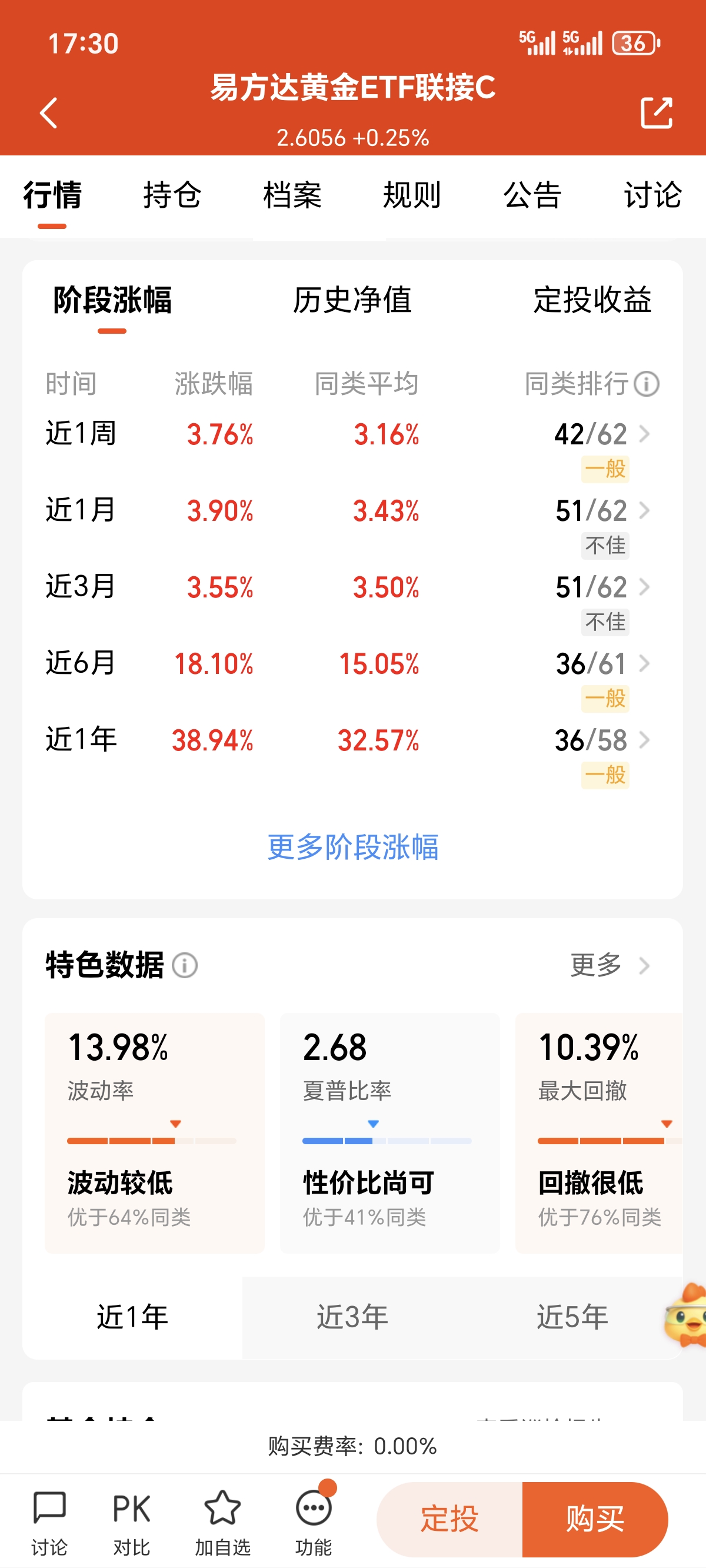 近期黄金迎来连续上涨趋势,而全球市场却整体有所震荡,所以我会选择开始定投起来$易方达黄金ETF联接C(OTCFUND|002963)$近一年涨超38.94%,远超同类平均水平,而美联储预期也在逐渐升温,为金价提供了强有力的支撑,再加上中国央行已经连续10个月增持黄金,我觉得后市行情仍然值得可期,看好长期发展啦!