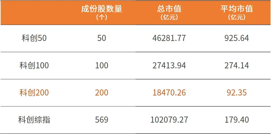 科创200从科创板中筛选200只市值相对较小、流动性较好的股票作为样本,整体风格偏向小盘成长。目前,成份股平均市值约92亿元,更能反映处于加速成长阶段的科创企业表现。