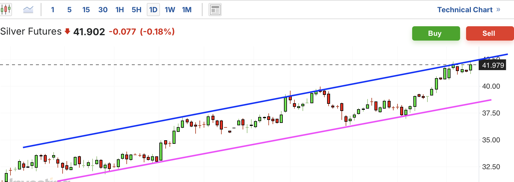 黄金此前箱体横盘趋势,进入盘整期,最近连续反弹,终于突破关键压力位,趋势反转向上。白银近期进入上升通道,一直缓步上行,这几近通道压力位,突破才能有更大行情。
