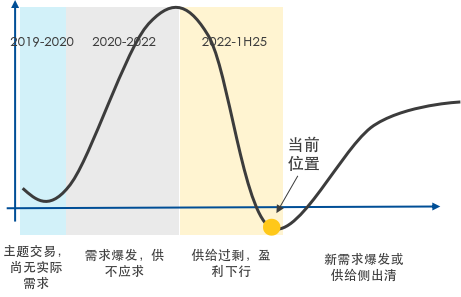当前或处于盈利拐点前夜,市场较为关注有新需求爆发或供给侧出清的方向。按制造业周期,我国新能源行业已走过主题交易、需求爆发供不应求、供给过剩应力下行,三大阶段后,或正处于盈利拐点的前夜。